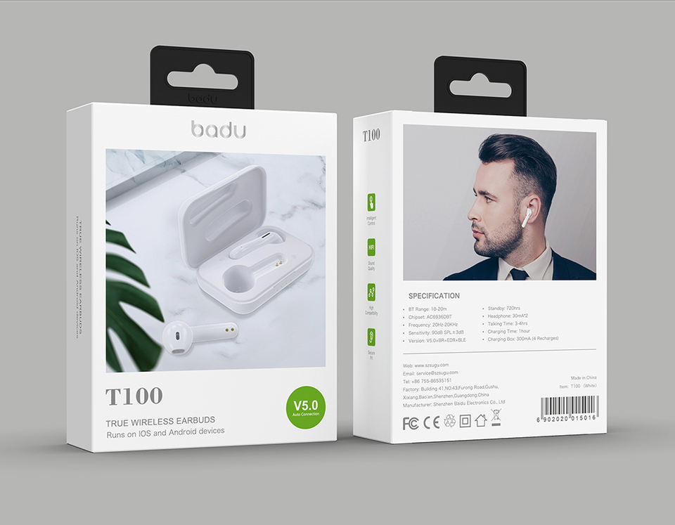 V5.0 true wireless earpiece Mini Inpods TS100 earphones TWS contact boat corded headsets for music.