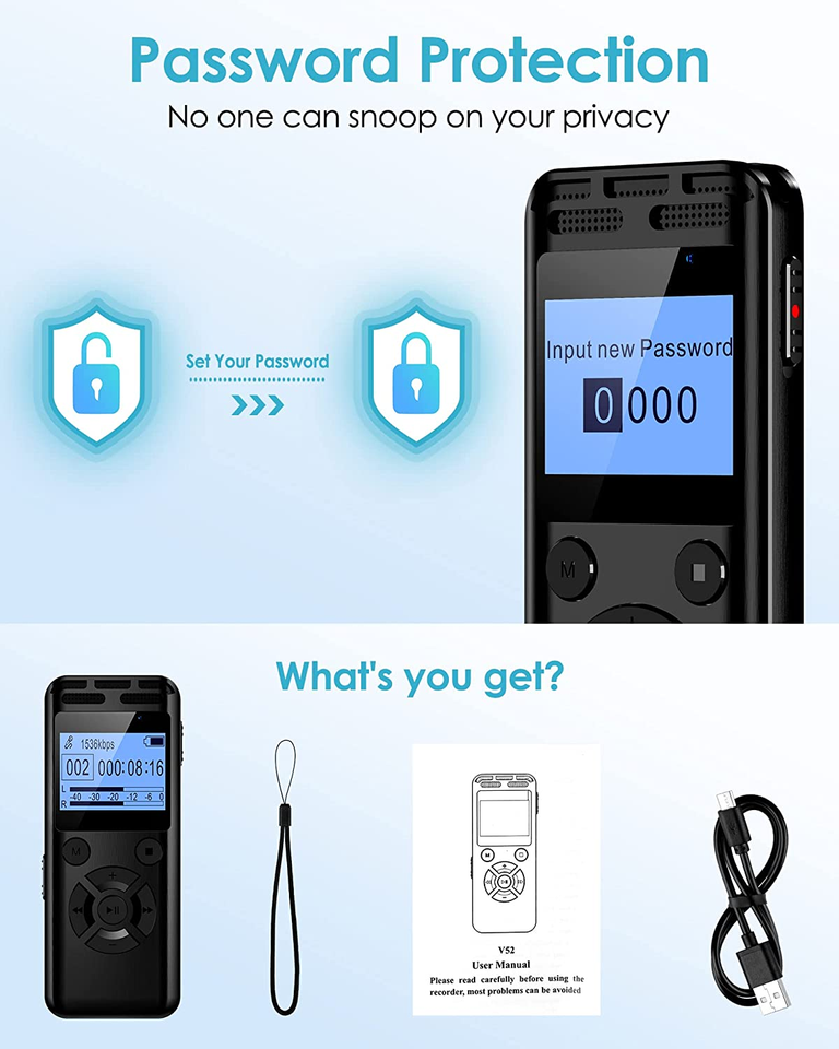 Grabadora de Voz Digital Mini Profesional V52 con Función de Audífono, Grabadora HD Portátil USB de 32G para Conferencias, Recargable