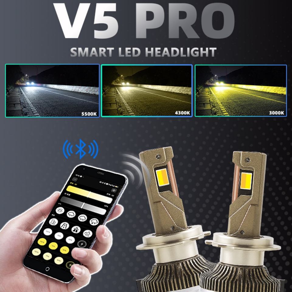 V5pro - Faro LED de 3 Colores, Bombilla LED H11 para Luces Antiniebla, Bombilla LED H4 H7 para Automóviles, Luz Alta y Baja, Control por Aplicación