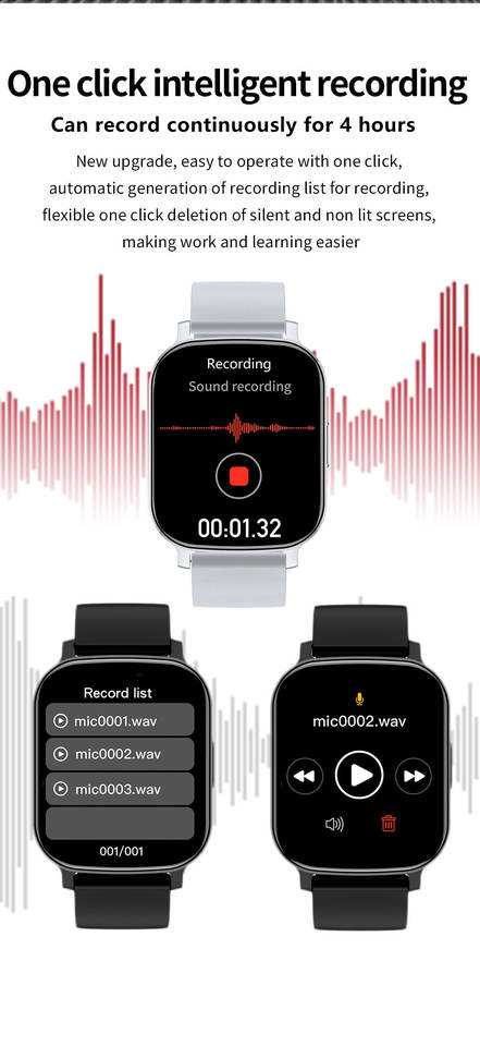 Cronógrafo, Calendario, Reloj despertador, Control remoto, Cuenta atrás, Rastreador de sueño, Medición de velocidad, seguimiento de forma, Recordatorio de llamada, Respuesta telefónica, Mensaje emergente, Seguimiento del estado de ánimo, Recordatorio de mensajes, Marcar llamada, Monitor de ritmo cardíaco, Control de gestos, Navegacion GPS, Seguimiento de la actividad, Rastreador de calorías, Llamada de voz, Acelerómetro, Rastreador de distancia, Rastreador multideporte, Reproductor DE MÚSICA, Recordatorio sedentario, Videollamada, Gestión menstrual, Asistente de voz AI, Hora mundial, Música interactivaFunción