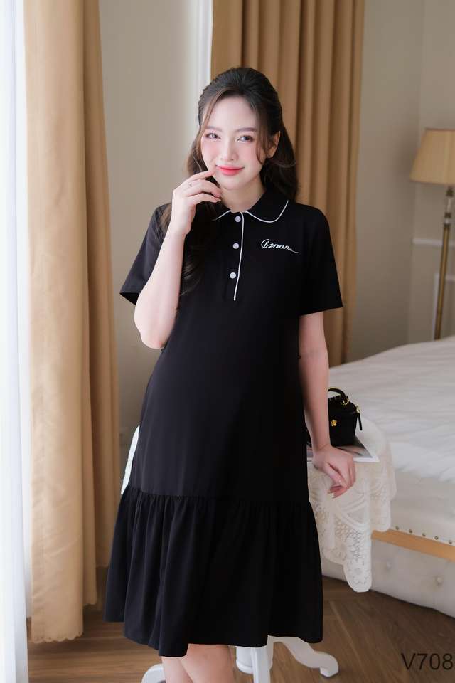 Vestido de maternidad absorbente de sudor anticontracción V708, ropa informal de algodón suave de buena absorción con bordado de lazo, buena elección de verano