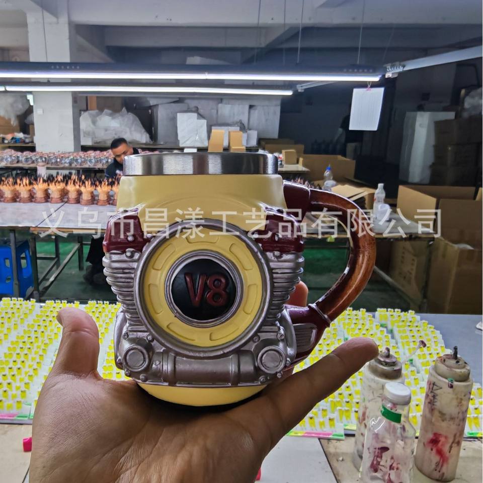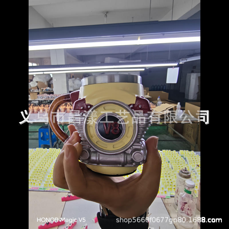 Taza 3D de Acero Inoxidable con Tapa y Aislamiento Térmico con Diseño de Motor V8 para Regalos