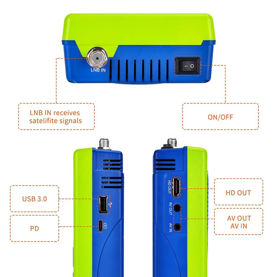 V8 Finder2 Buscador de medidor de satélite digital de pantalla de 3,5 pulgadas Receptor de TV portátil compatible con 2/S2 y 1/4 H.264(8 bits)/1/2/4 H.