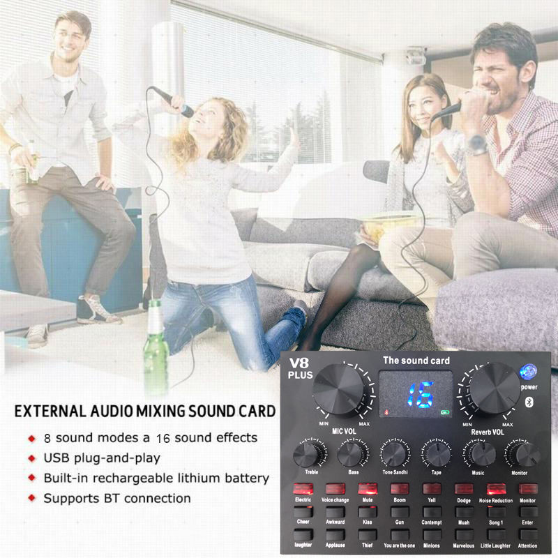 Tarjeta de sonido v8 plus, interfaz de audio usb, tarjeta de sonido