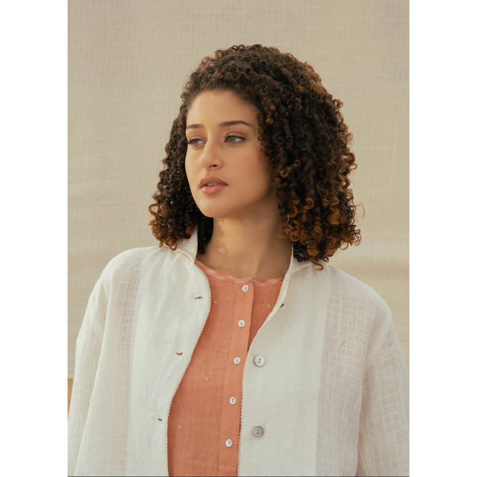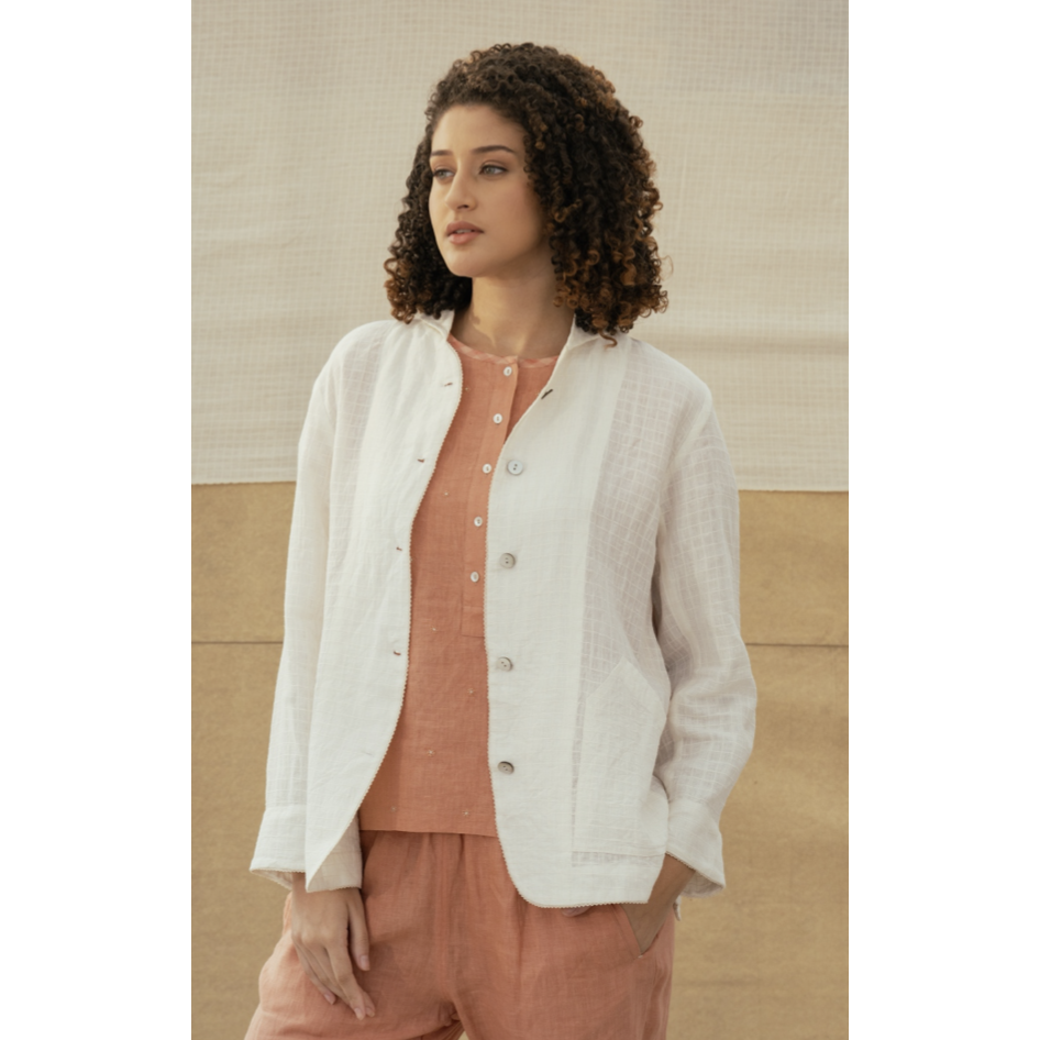Chaqueta VAARUNI de Lino Color Marfil con Decoración de Botones