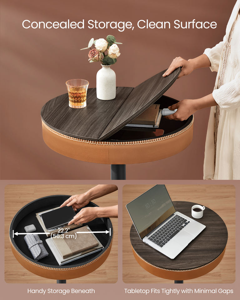 VASAGLE Mesa de Bar de Altura Regulable, Mesa Alta Redonda de Pub con Almacenamiento