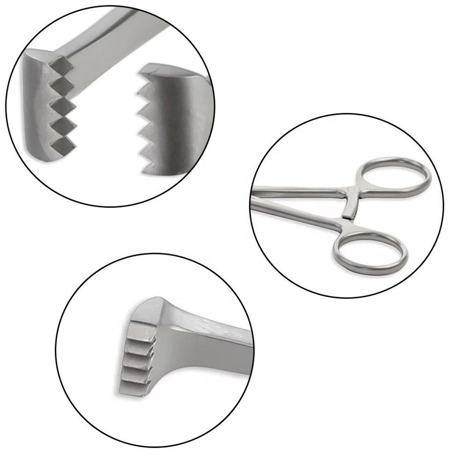 Pinzas VATS Allis Curvas Izquierdas, Mandíbulas de 6 mm de Ancho, Eje de 7 mm con Trinquete, Longitud de Trabajo de 9.5'' (24 cm), Acero Inoxidable Alemán | OldMed