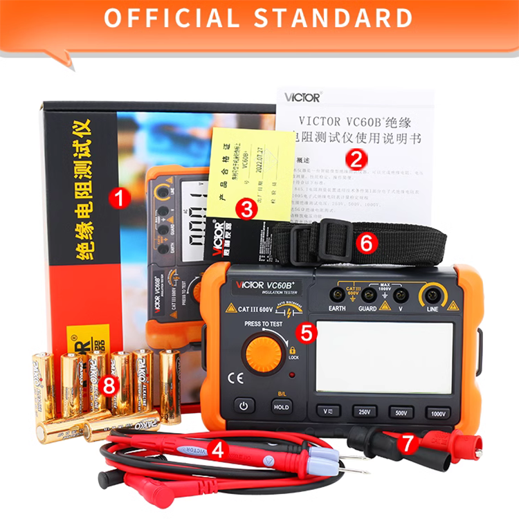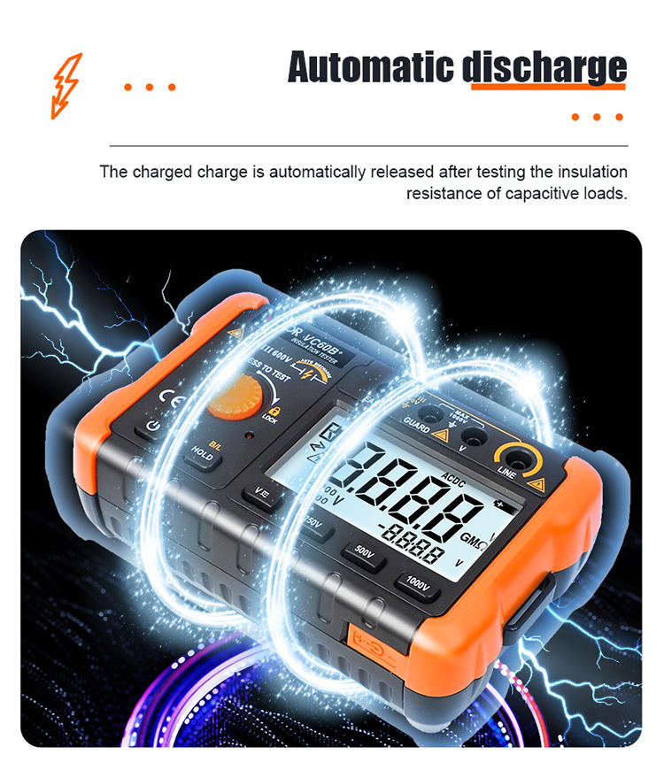 Megóhmetro Digital VC60B+, Probador de Aislamiento, Rango de 250V, 500V, 1000V, Solo Pantalla Digital