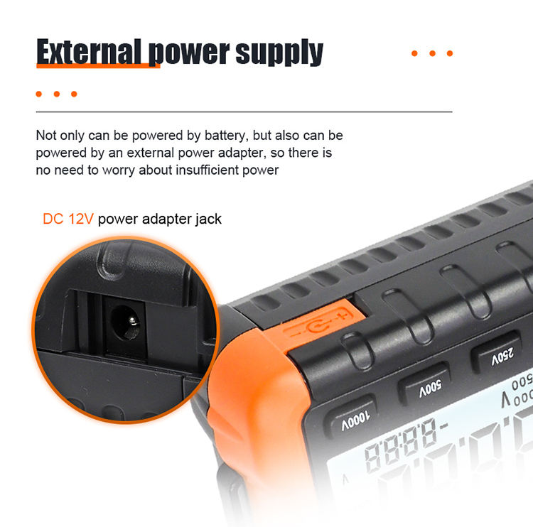 Rango de voltaje: El dispositivo admite un amplio rango de voltaje de 250V, 500V y 1000V, lo que permite realizar pruebas versátiles y precisas en diferentes sistemas eléctricos.