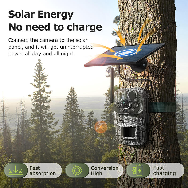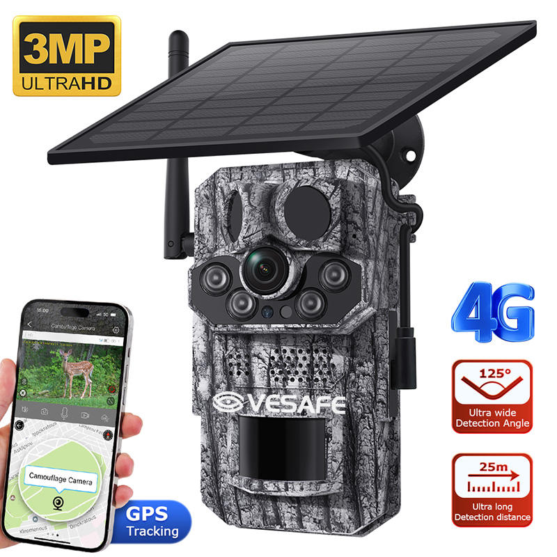 Cámara de ángulo salvaje de caza con detección de temperatura VESAFE GPS 4G Solar Trail HD 3MP PIR Night Vision Trail Hunting CCTV Camera