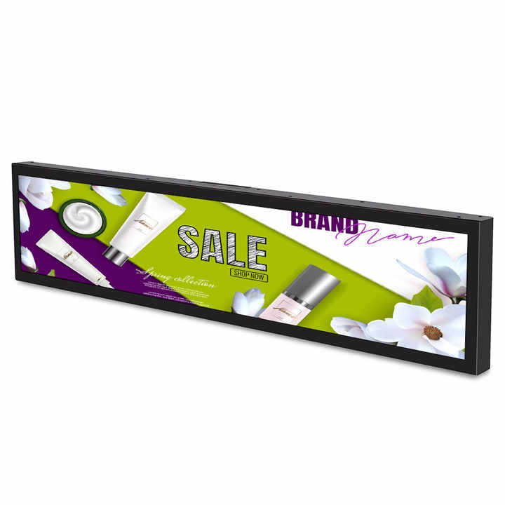 Pantalla LCD Android al por mayor de fábrica VETO, pantalla publicitaria ancha tipo barra, CMS gratuito para uso en interiores