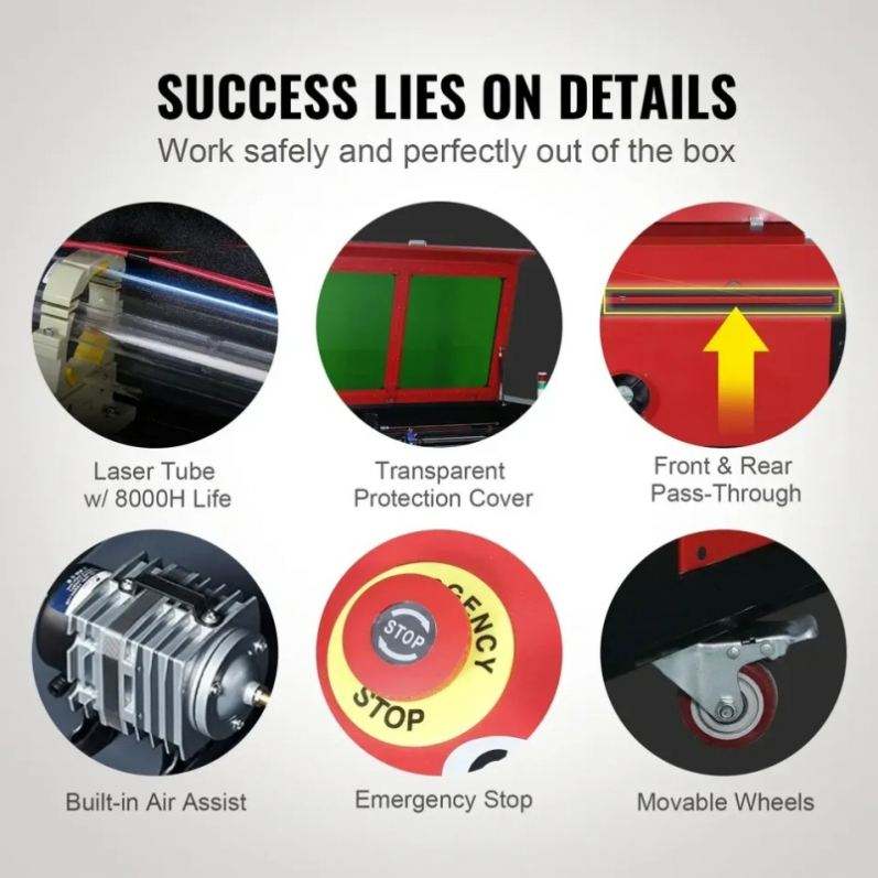 VEVOR-Grabador láser CO2 RUIDA 50/60/80/100/130W, tela acrílica Lightburn, grabado en madera, tubo láser impreso como pieza de repuesto