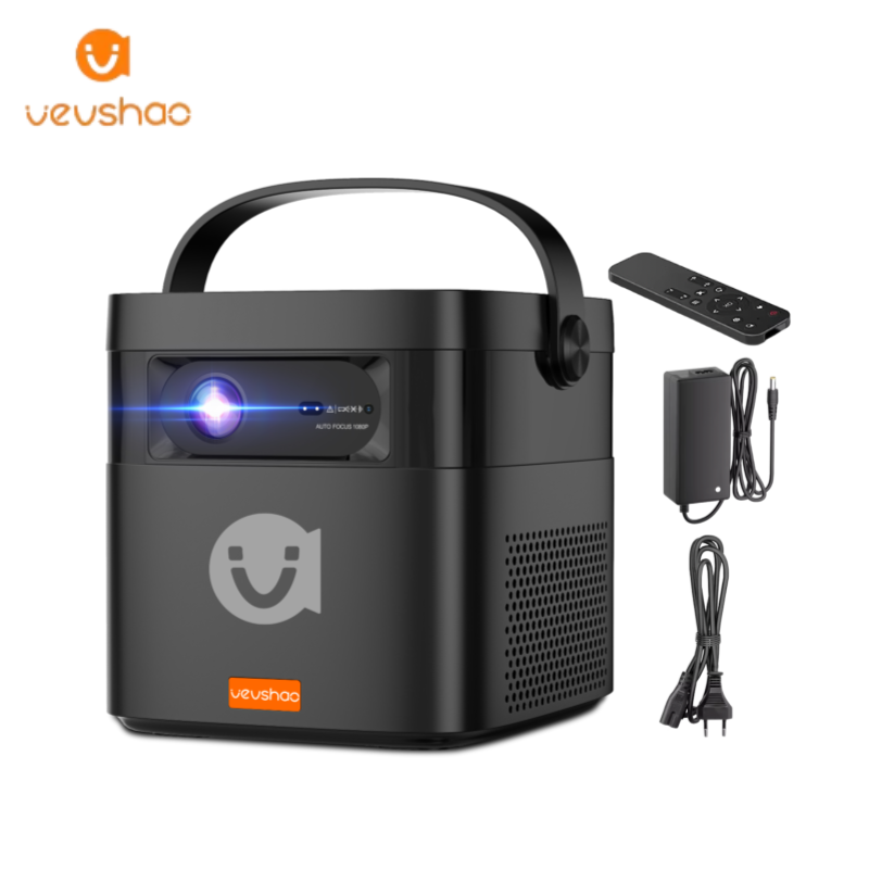VEVSHAO Nuevo Diseño Android 9 1080P Proyector Portátil V50 con Estuche de Transporte, Mini Proyector DLP Recargable con Batería Integrada
