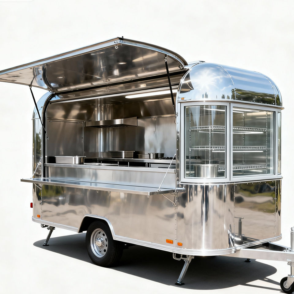 Remolque de Comida VIC de Acero Inoxidable, Camioneta de Comida Móvil Multifuncional con Estación de Dulces en Venta