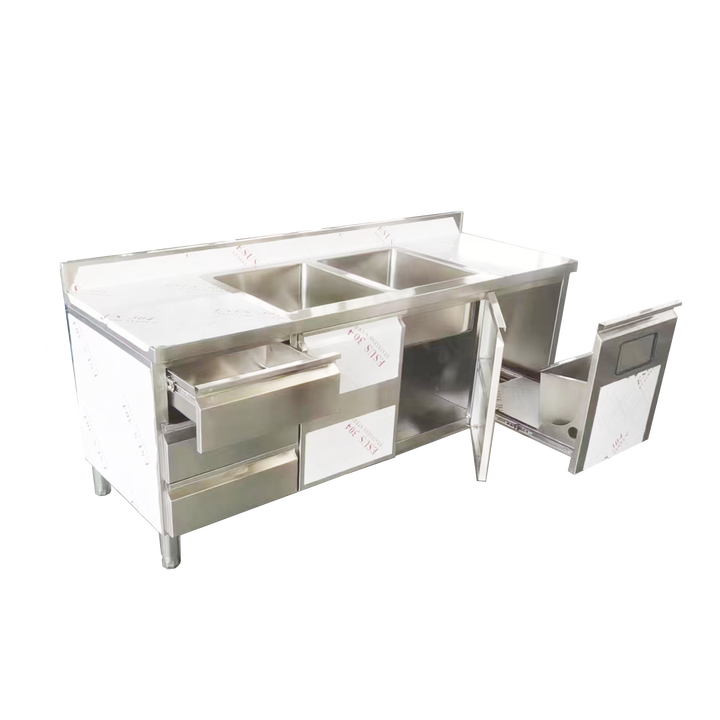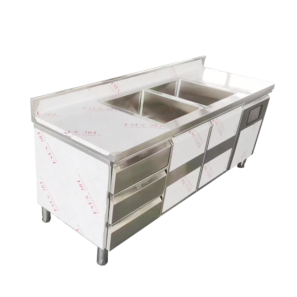 Fregadero de Cocina de Acero Inoxidable de Alta Calidad VICTORY KITCHEN, Diseño Industrial Comercial, Cuencos Cuadrados para Supermercado