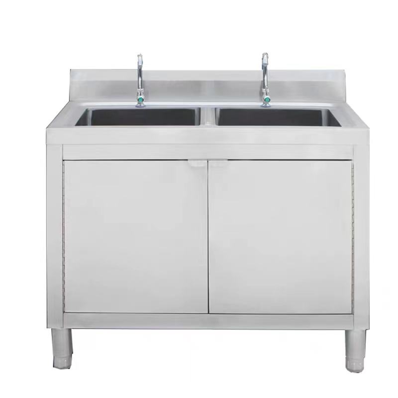 VICTORY KITCHEN Mueble de cocina industrial, banco de trabajo de acero inoxidable, armario de cocina con doble fregadero, equipo de catering
