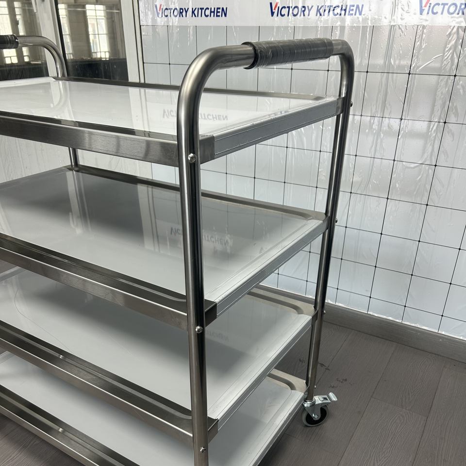 VICTORY KITCHEN Muebles de restaurante modernos Carrito de cuatro capas de acero inoxidable a prueba de herrumbre para servicio de comida Restaurante Uso de comedor