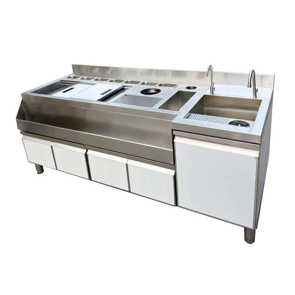 VICTORY KITCHEN superventas 304 mostradores de pizza de acero inoxidable banco de trabajo congelador con fregadero equipo de panadería para restaurante