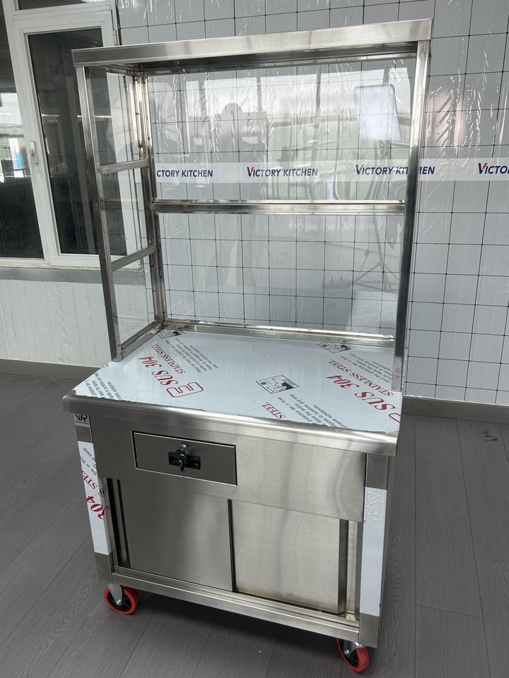 Carrito de aperitivos de acero inoxidable VICTORY, carrito de té de leche con cajón, equipo de cocina, camión de comida en Malasia