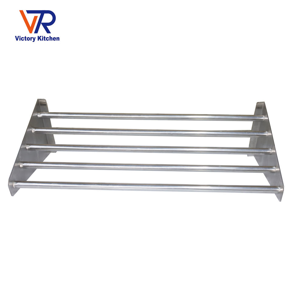 Estante de pared de tubo de acero inoxidable personalizado Victory, estante de almacenamiento para hoteles y restaurantes, equipo de catering