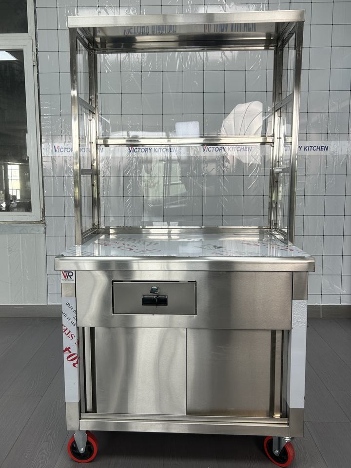 Gran oferta de VICTORY, carrito de aperitivos de acero inoxidable, carrito de té de la leche con cajón, equipo de catering, camión de comida