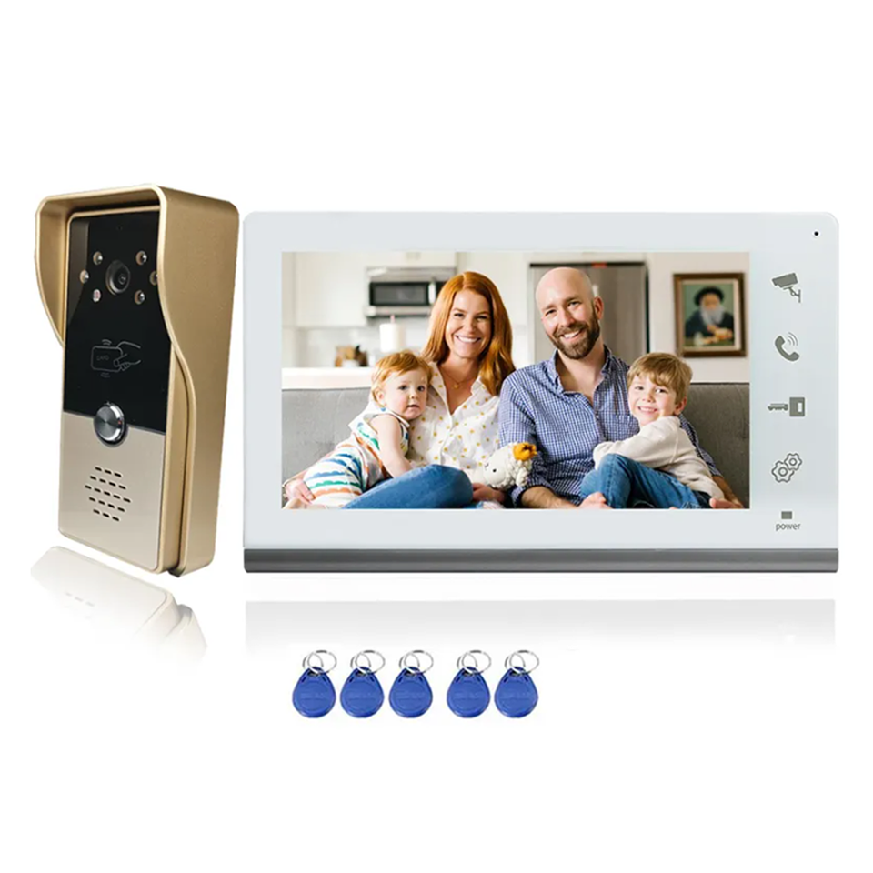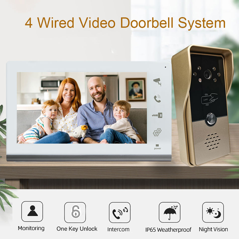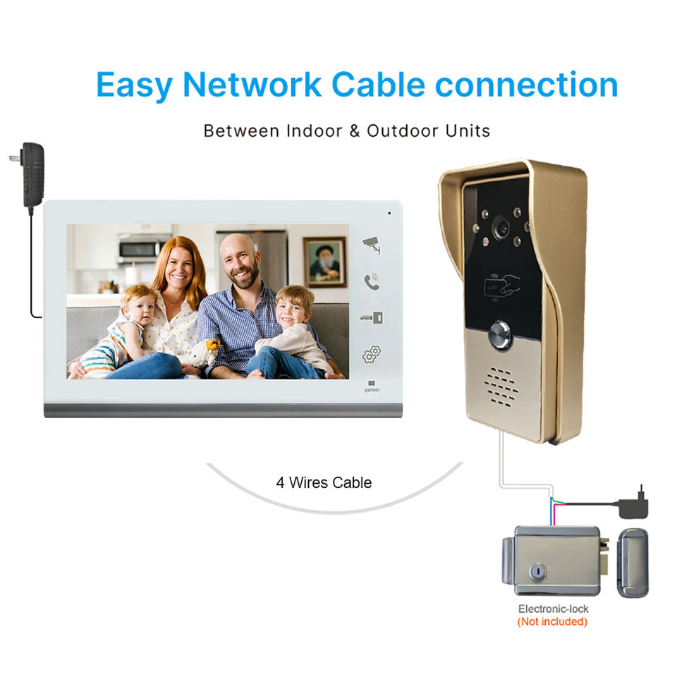 VIDEW - Sistema de Videoportero con Visión Nocturna de 7 Pulgadas, Intercomunicador con Cable, Desbloqueo RFID, Cámara, Timbre, Teléfono para Puerta, para Casa, Villa, Apartamento