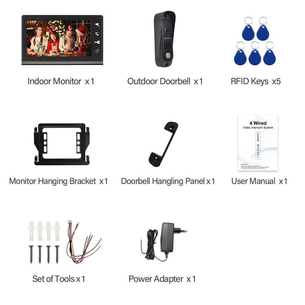 Videoportero con cable, sistema de intercomunicación para apartamento, Monitor a Color de 7 pulgadas y cámara HD, visión nocturna para el hogar