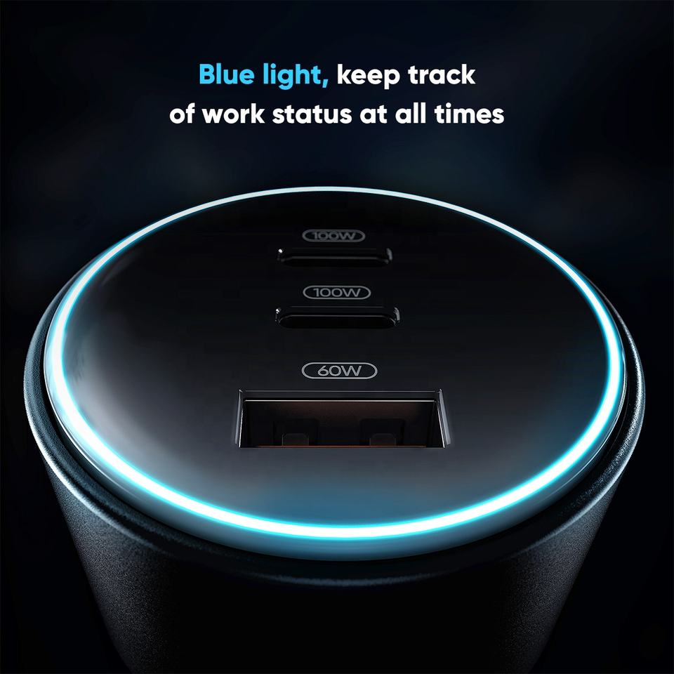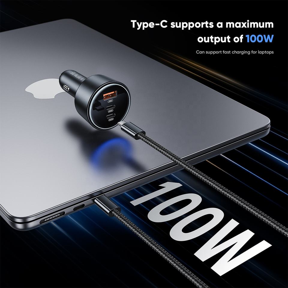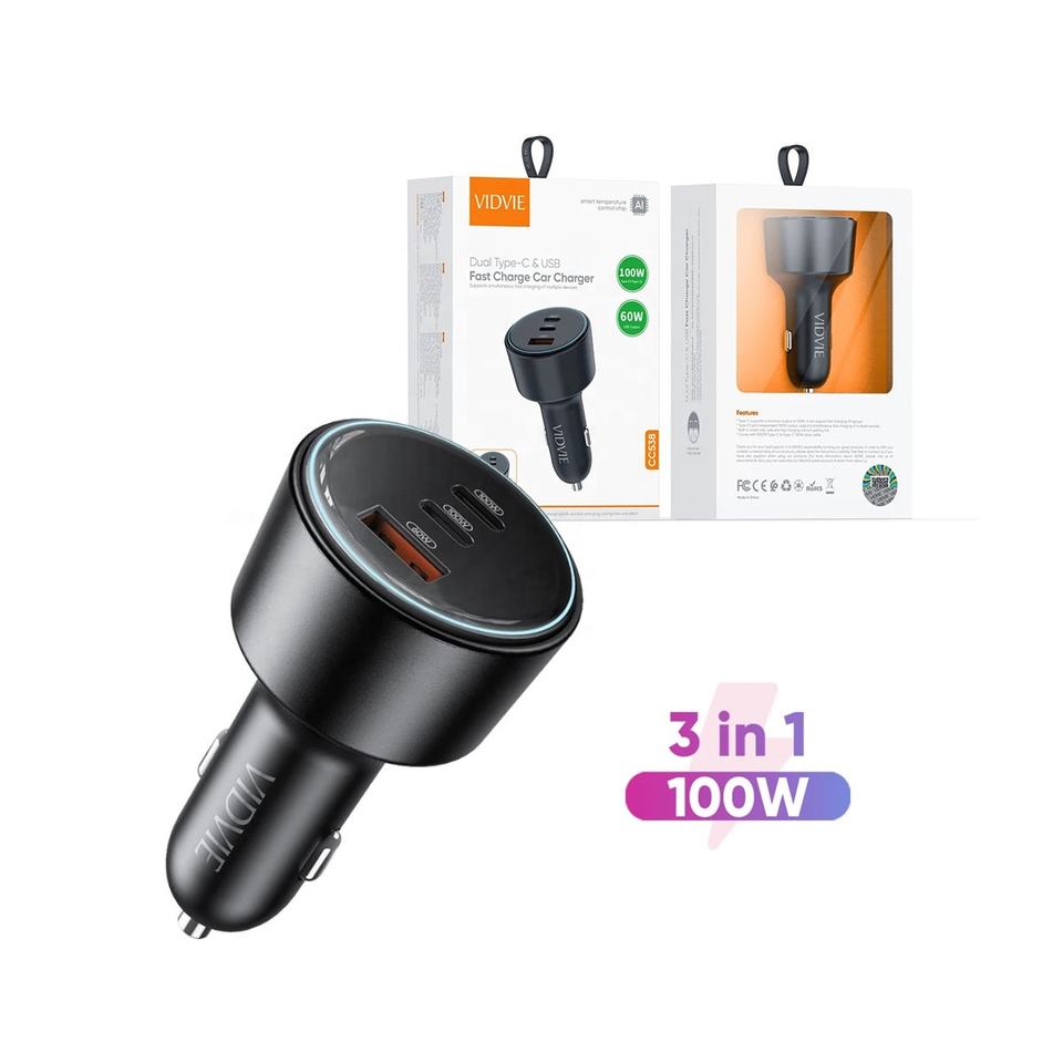VIDVIE LED Light Dual Tipo C 100W USB 60W Cargador de coche de carga rápida para computadoras portátiles Teléfonos móviles