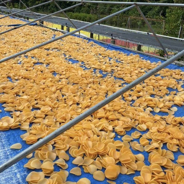 Material:Almidón DE LA tapioca, camarón, azúcar, sal, reforzador del sabor, agente que hace espuma
