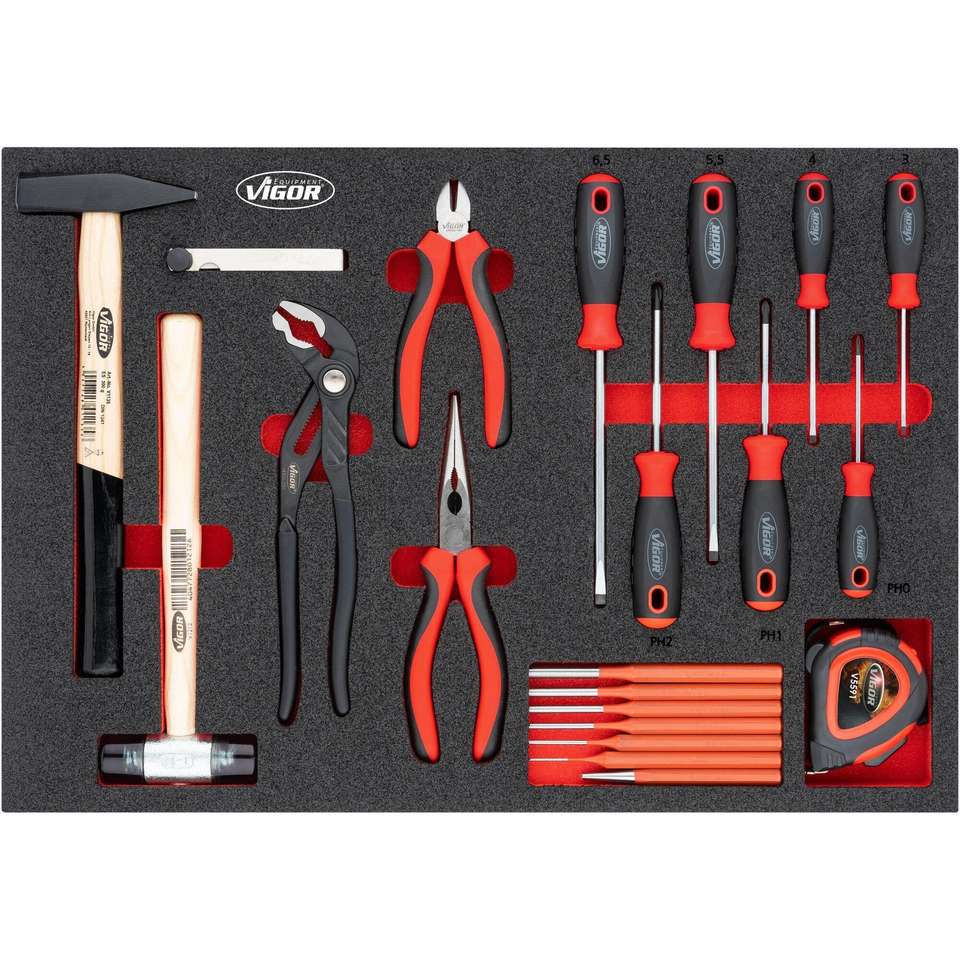 Juego de martillos, alicates y destornilladores VIGOR ∙ V5634N ∙ 21 piezas ∙ Número de herramientas: 21