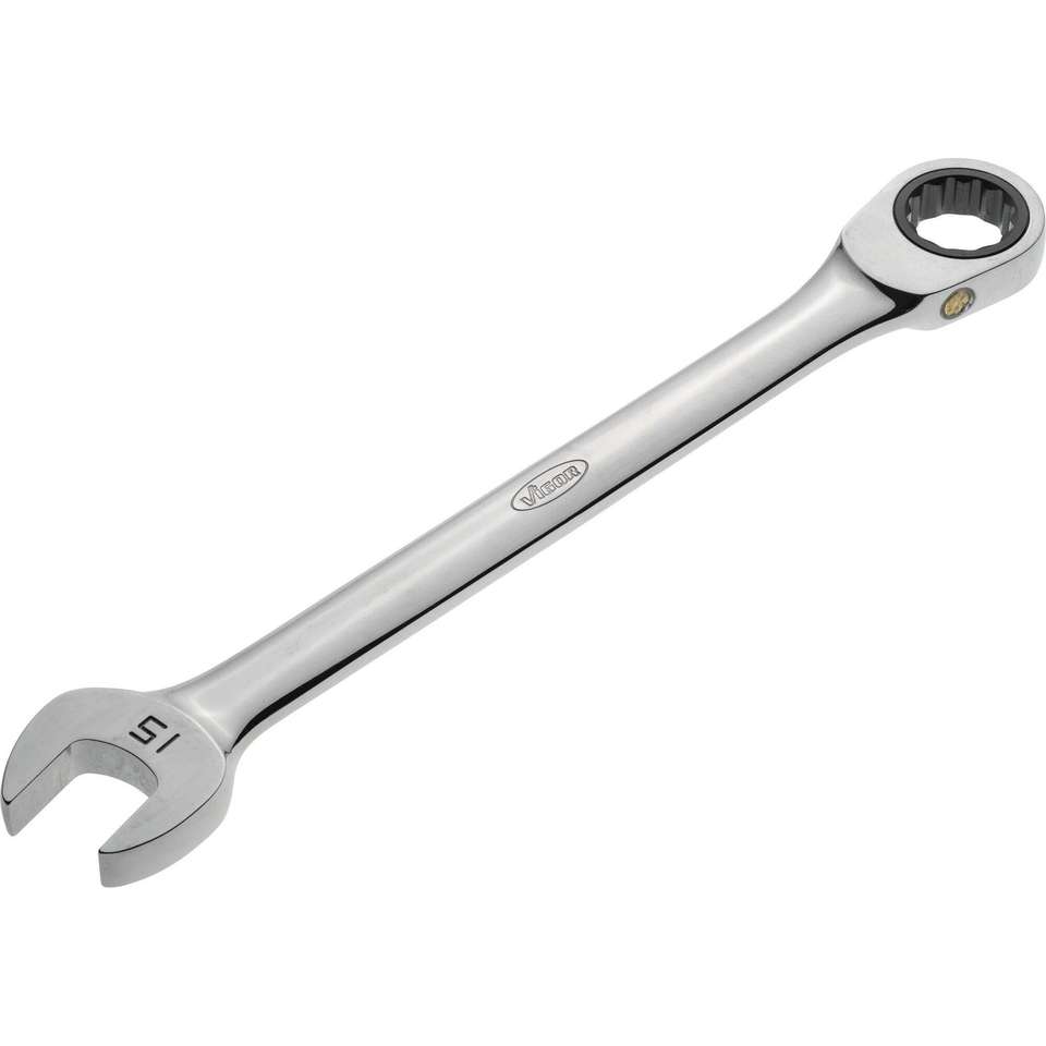 VIGOR Llave combinada de trinquete ∙ larga ∙ V1026 ∙ Perfil hexagonal exterior, perfil exterior de 12 puntos ∙ Tamaño 15 mm