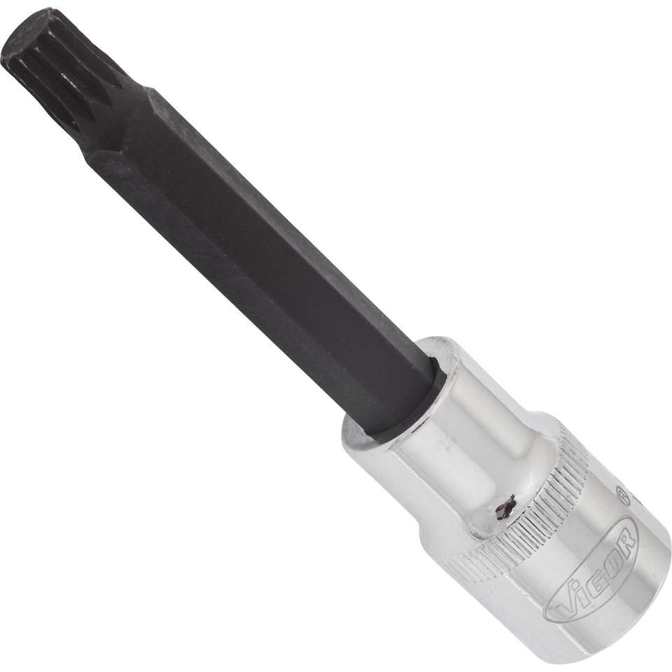 Vaso de destornillador VIGOR para tornillos con dentado interno ∙ XZN ∙ V2113 ∙ 1/2 pulgadas (12,5mm) cuadrado, hueco ∙ Serrati interno