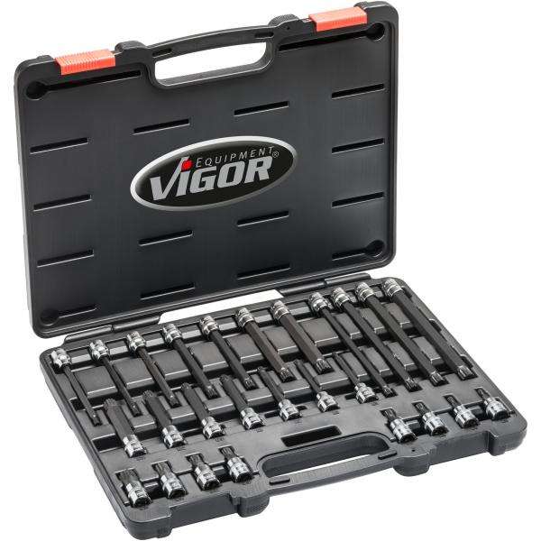 VIGOR - V6018 3/8 ''Juego de vaso de destornillador para tornillos con dentado interno XZN®(26 unidades) -ENCHUFES DE MANO EAN 4047728065894