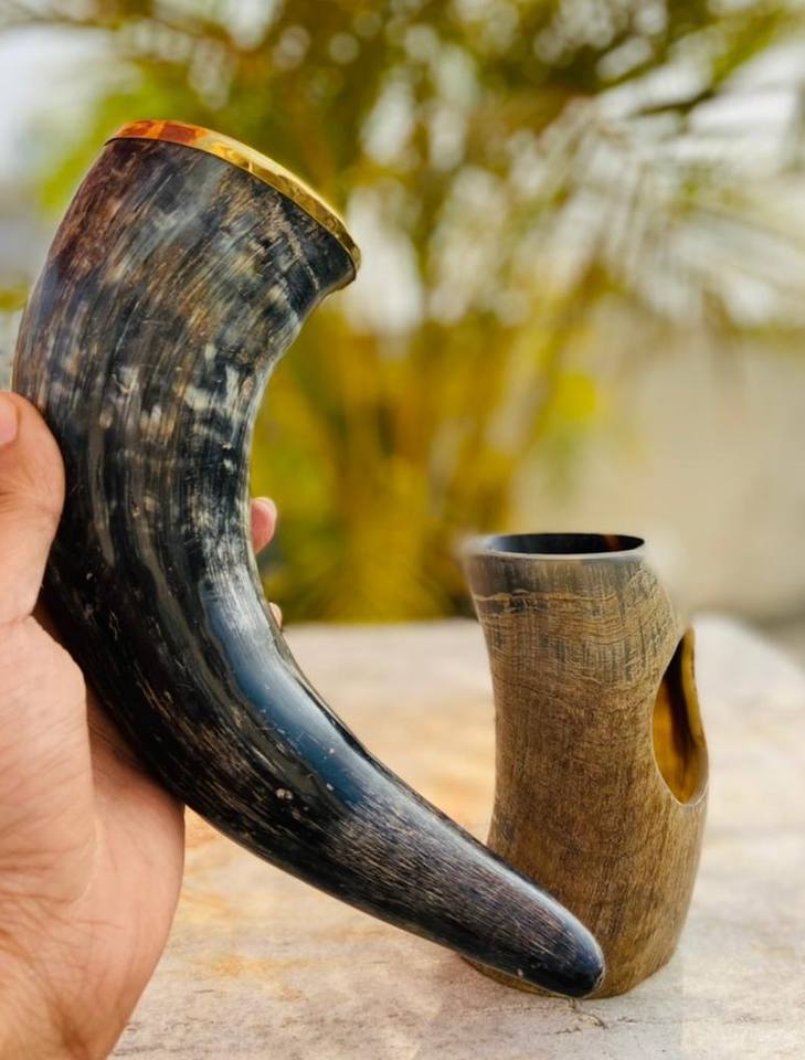Cuerno para beber vikingo pulido respetuoso con el medio ambiente hecho a mano natural personalizado para restaurante en casa