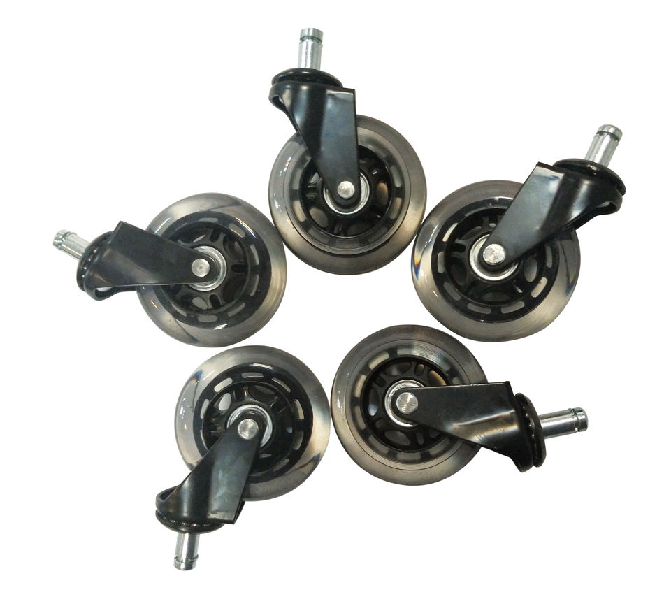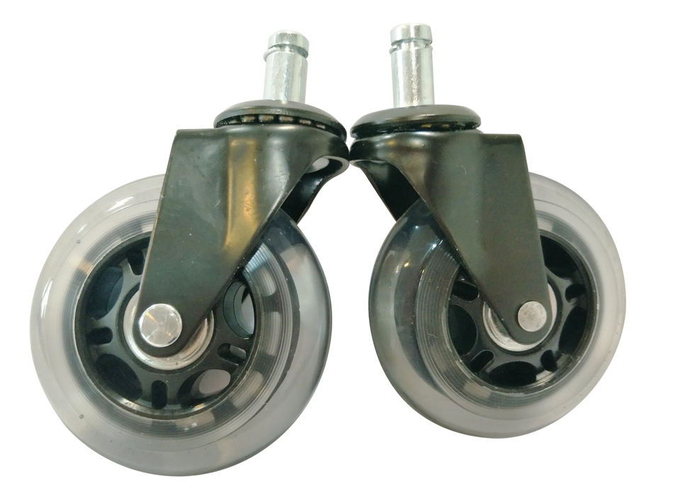 Ruedas giratorias de acero VIMA de 2 pulgadas para silla de oficina, freno roscado, poliuretano transparente PU con ruedas de vástago de bloqueo