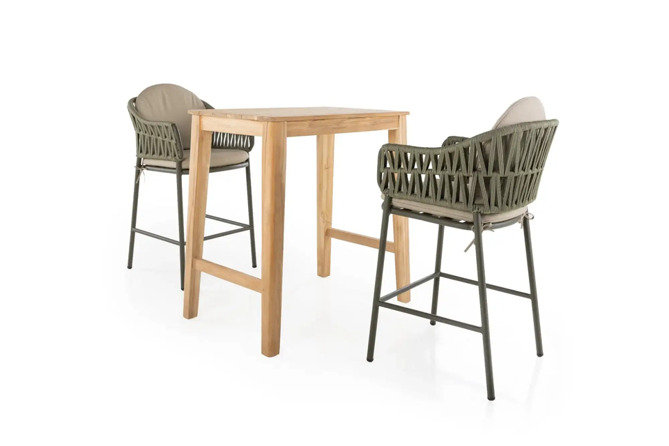 Juego de Mesa de Bar Moderno para Exteriores VINO con Taburetes de Cuerda y Mesa de Madera de Teca