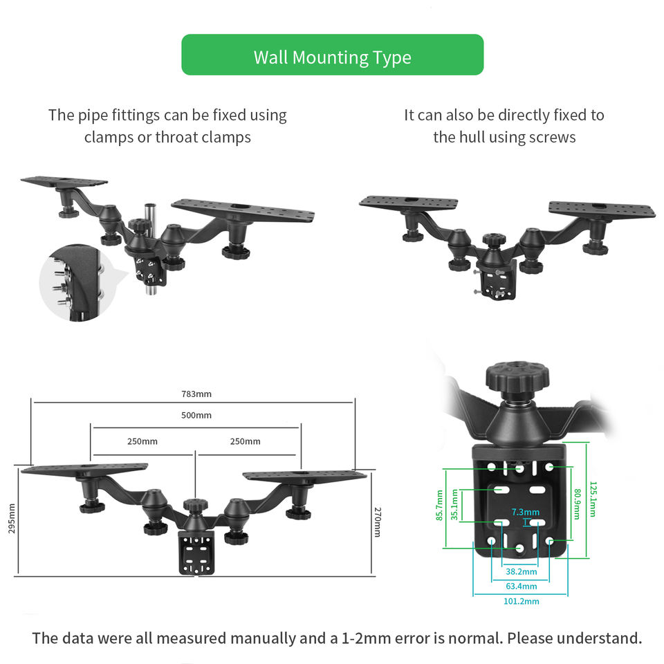 Soporte Lateral VINmounts para Dos Dispositivos de 12 Pulgadas, Brazo Giratorio para Buscador de Peces, Ajustable 360°, Resistente y Ecológico para Uso Marino