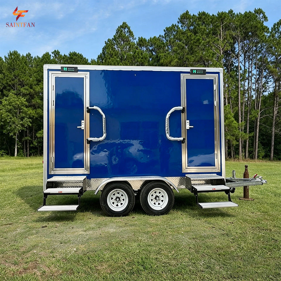 Remolque de Baño Portátil VIP de 2 Cabinas, Remolque de Ducha y Baño de Lujo para Exteriores