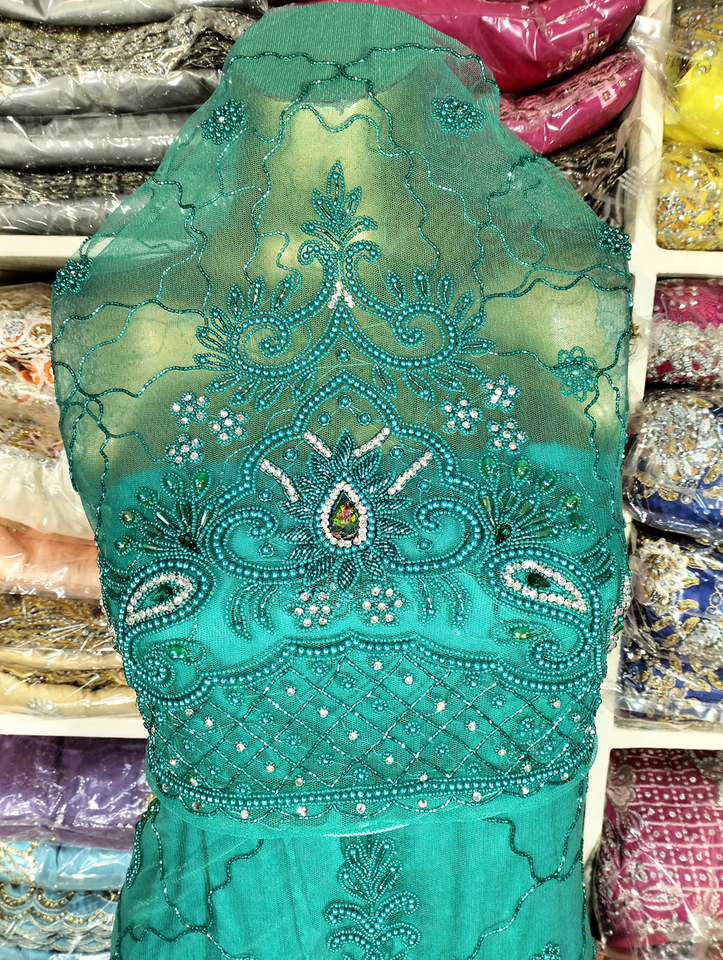 Característica:Encaje neto con cuentas pesadas + tela de seda