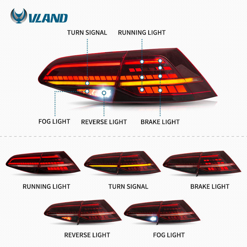 Luces Traseras LED de Fábrica VLAND al Por Mayor para VW MK7 Golf 7 Golf Mk7 7.5, Lámpara Trasera para Coche con Señal de Giro Secuencial de 2013 en Adelante