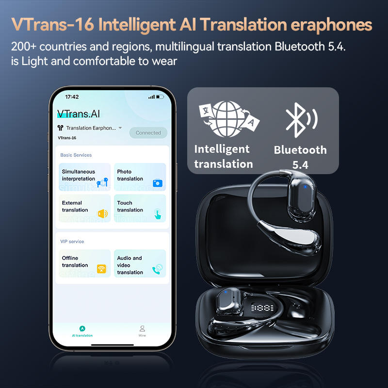 Auriculares de Traducción de Voz Inteligente VORMOR V16, Chino-Inglés, Multilingüe, BT 5.4, Traductor Intraaural
