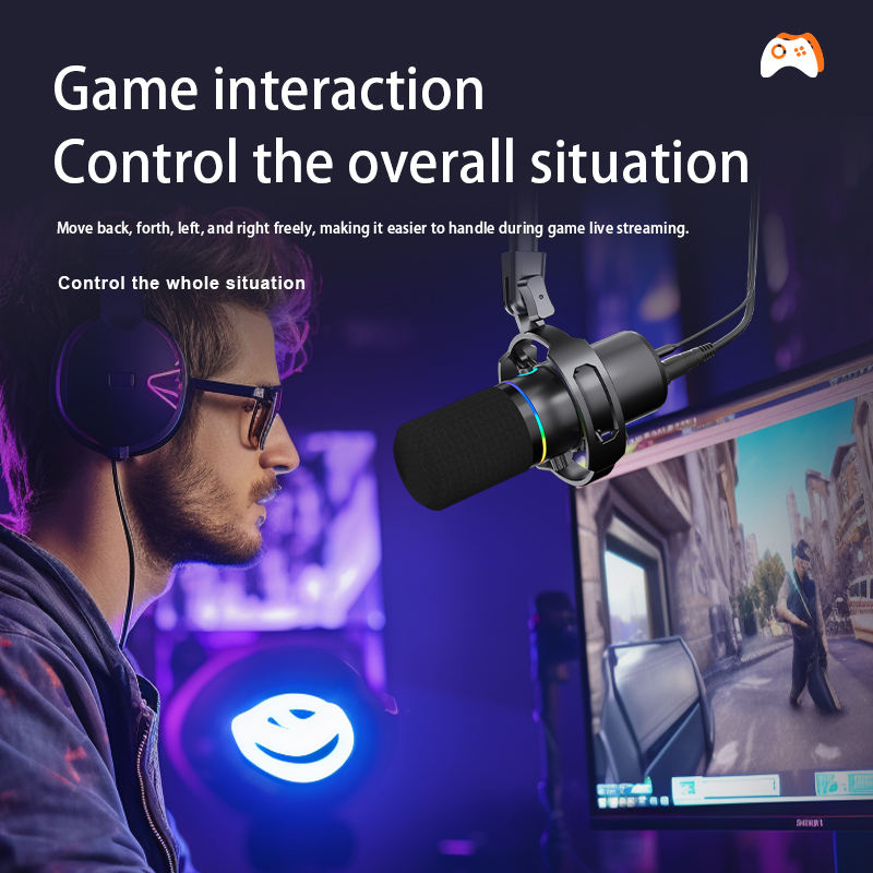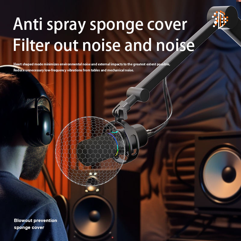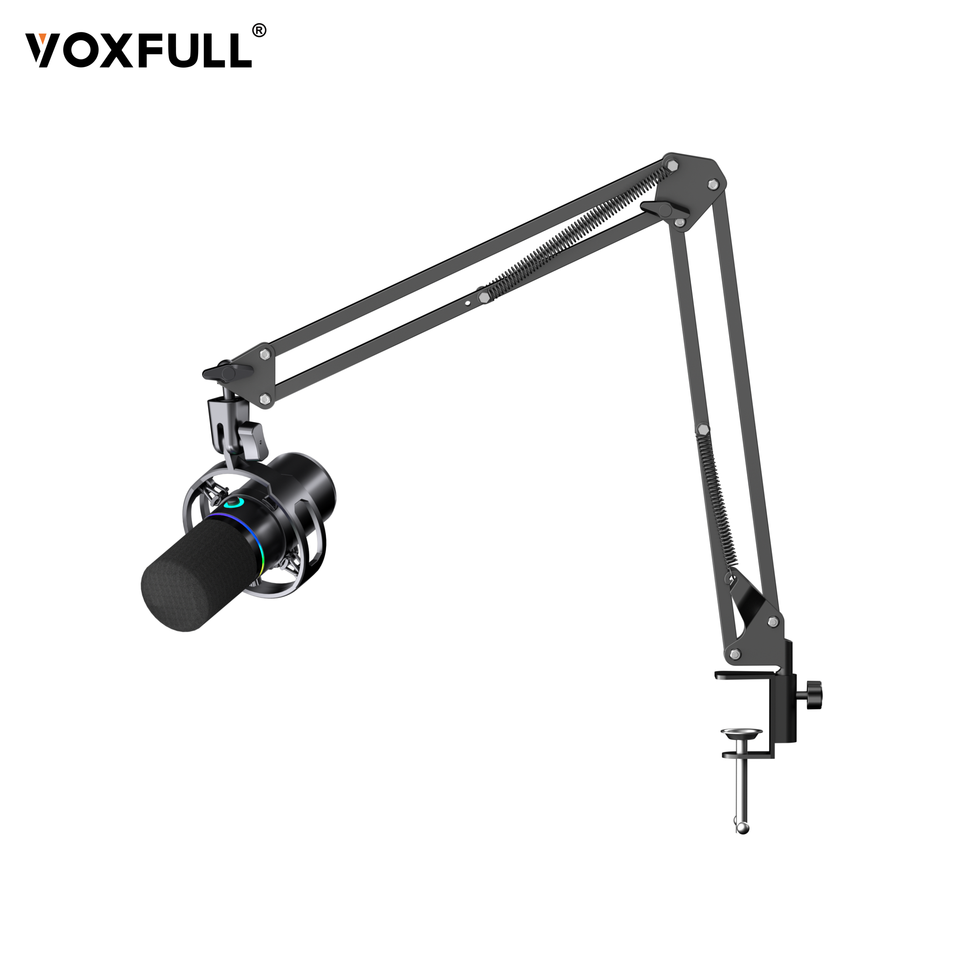 Micrófono de Estudio de Escritorio USB con Cable, Cápsula Dinámica Cardioide VOXFULL WN8-35, Iluminación RGB, Cancelación de Ruido, Procesamiento de Sonido Nítido