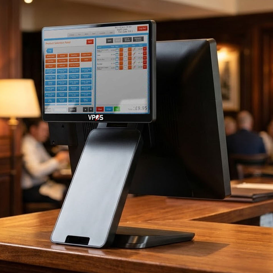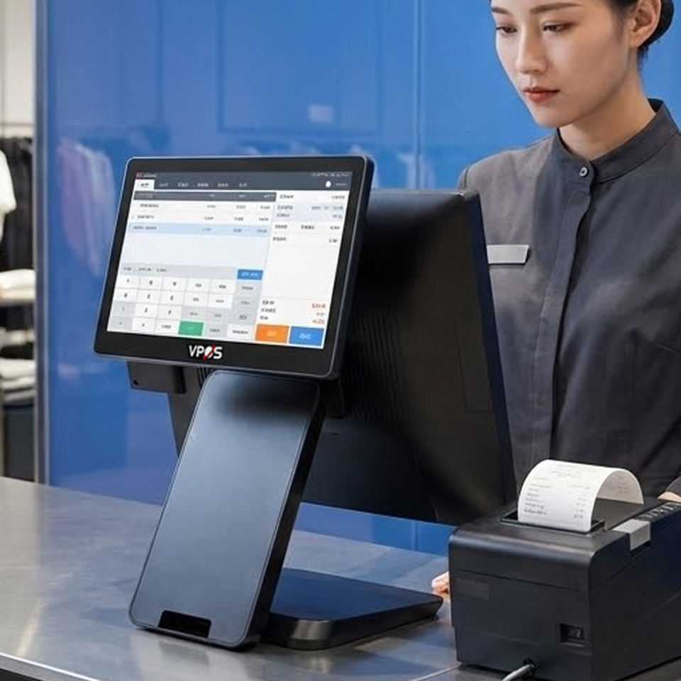 Sistema POS Inteligente Profesional VPOS T3, Pantalla Doble, Impresora Integrada, Táctil Capacitiva, Bluetooth/Wi-Fi 6 para Restaurantes y Comercio Minorista