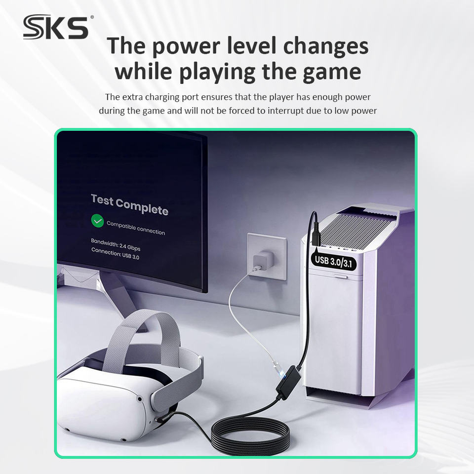 Cable de Enlace VR USB 3.2, Cable de Datos y Carga con Amplificador de Señal | Cable Trenzado Blindado para Auriculares VR Oculus Quest 2/3 Pico 4
