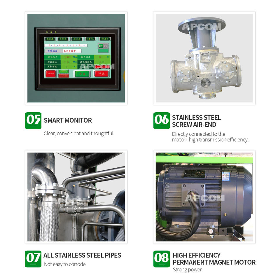 Componentes principales:PLC, Motor, De la bomba, Rodamiento, Unidad de compresión (air-end), extremo del compresor, cabeza del compresor, Unidad principal del compresor de aire, controlador