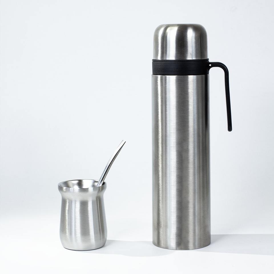 VT47 Termo de Acero Inoxidable de 1 Litro con Media Asa y Tapón Matero para Yerba Mate, Frasco Aislado al Calor de 1000 ml
