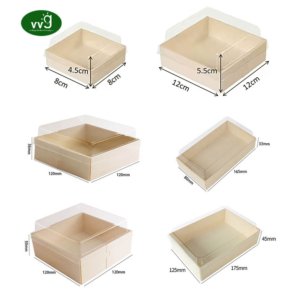 Cajas VVG To Go para postres, biodegradables de madera desechables, envase para panadería con tapa para donuts, caramelos y pastelería