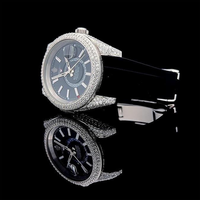 Reloj de Buceo Automático para Hombre con Diamante Moissanite Corte VVS, Movimiento Ronda, Correa de Acero Inoxidable, Esfera de Cristal Analógica, Alta Calidad y Lujo