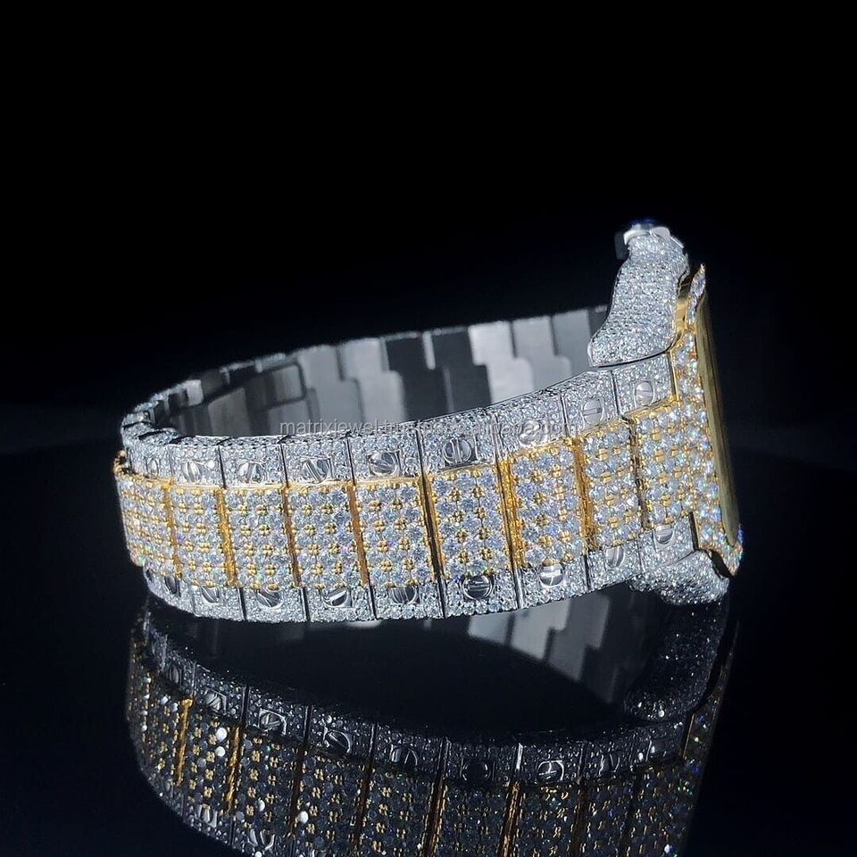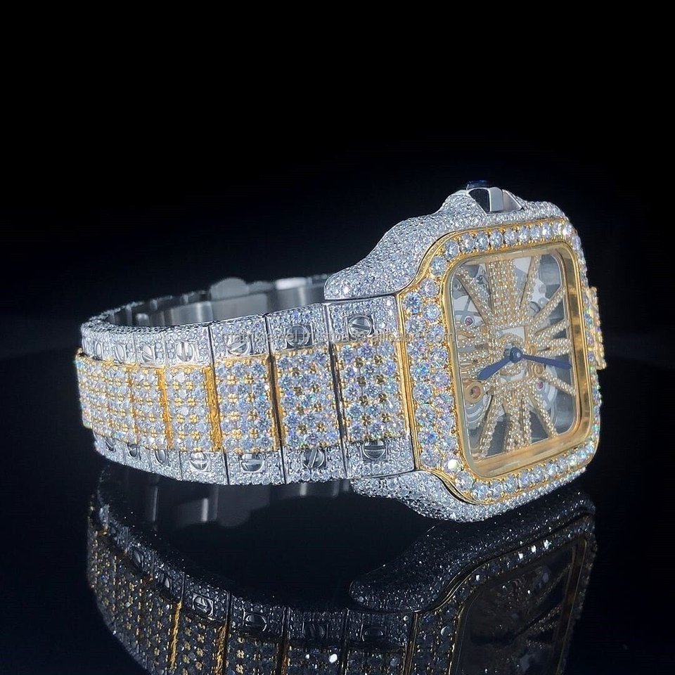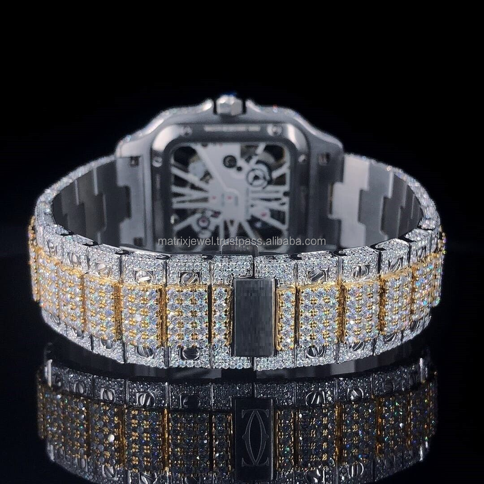 VVS Lab Diamond Watch Lujo Personalizar Hip Hop Skeleton relojes Reloj mecánico con oro amarillo correa de acero inoxidable CVD