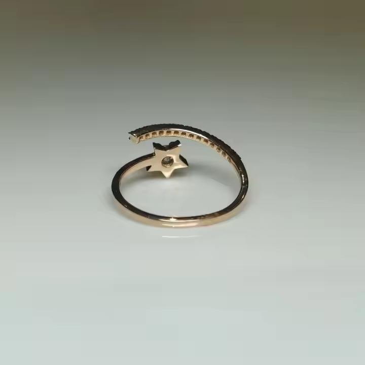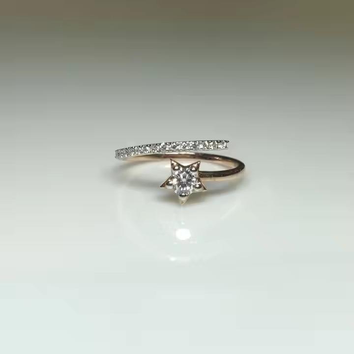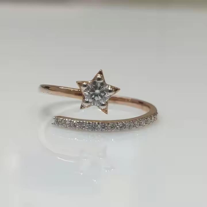 Anillo de banda abierta de diamante cultivado en laboratorio VVS, forma de estrella de oro rosa de 14 quilates para bodas, aniversarios, anillos de compromiso